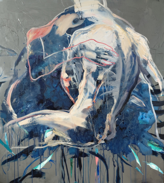 Elements of Love, 2022, oil and acrylic on canvas, 160 x 120cm. In private collections.